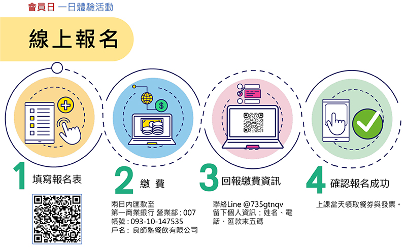 1️.加入良師塾line會員(請於line上搜尋 @735gtnqv )。