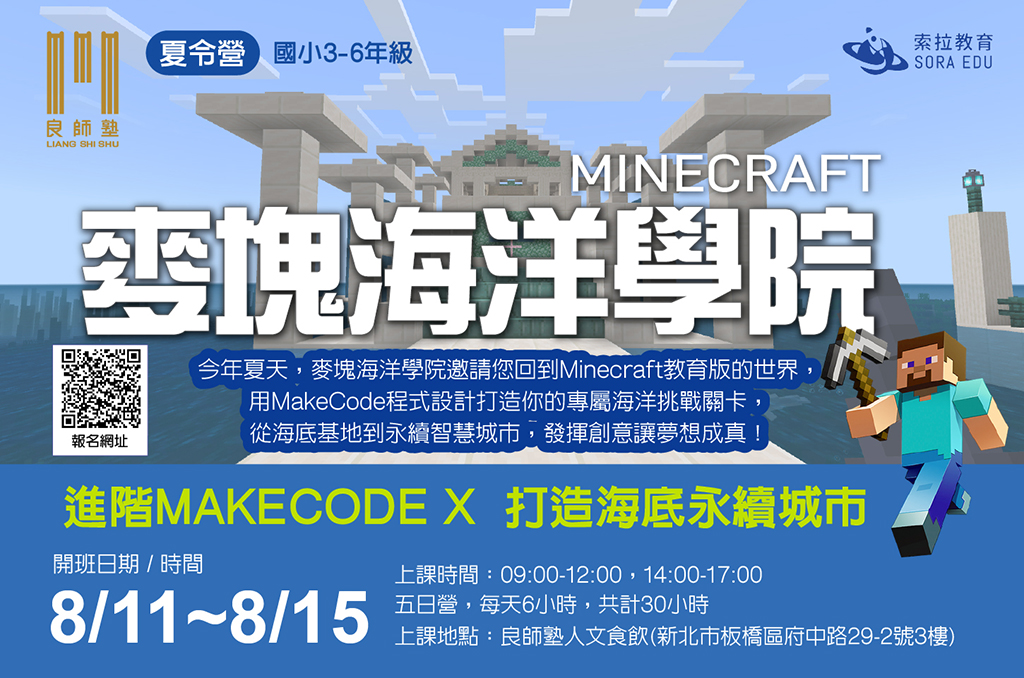 適合學生:國小三至六年級學員,需要符合「參加過麥塊冒險王」或「接觸過麥塊教育版MakeCode程式碼」其中一項)